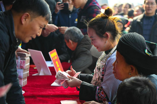湖南湘西花垣县十八洞村村民在清点发放的产业收益金(2019年1月17日摄)。