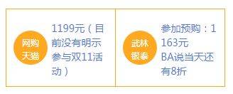 温馨提示:距离双11还有几个小时,网上商品价格可能会有变化,具体商品请以最新价格为准哦!