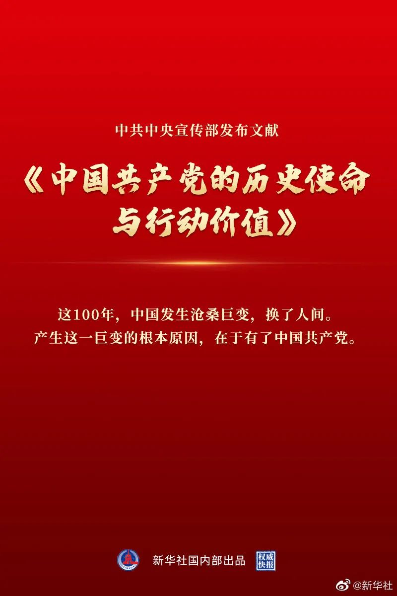 中宣部26日发布文献《中国共产党的历史使命与行动价值》。