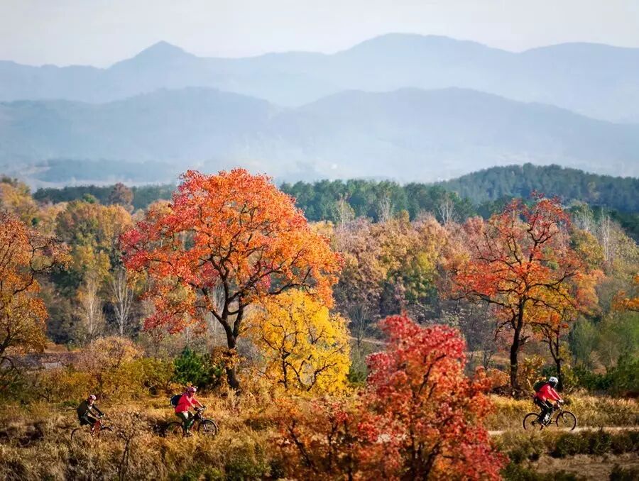 在湖北,只要留心,会发现很多赏叶的地方。英山桃花冲也是如此,来的人越来越多。11月,这里满山遍野的红叶黄花,一片接一片,让人目不暇接。向远处看,山山岭岭、沟沟壑壑,都被深秋染成了大气磅礴的金色。因此也吸引不少游客在这类拍写真。