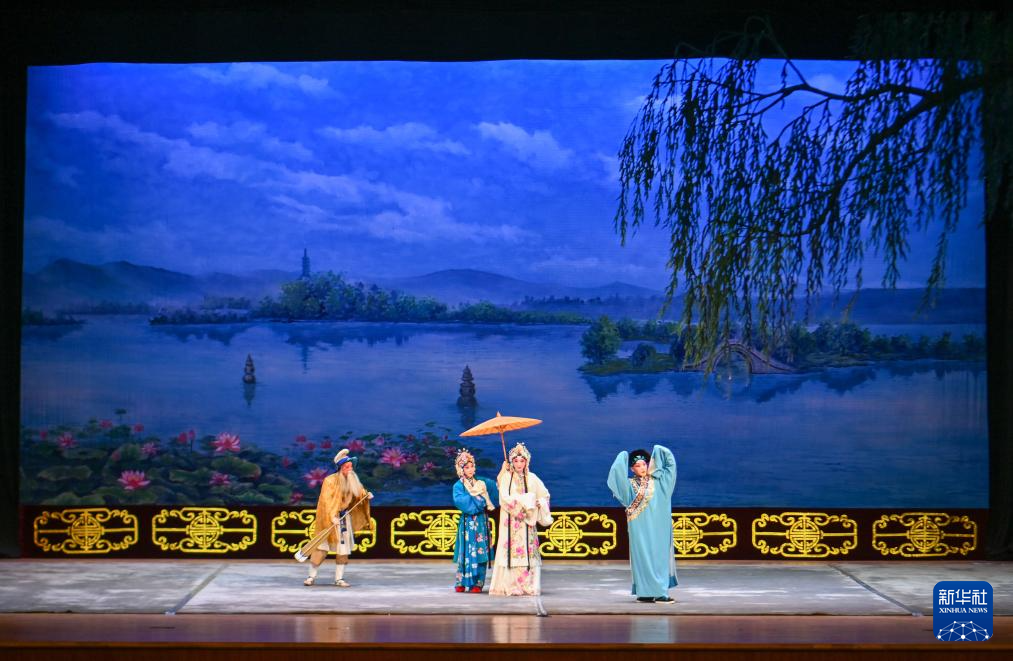 9月13日,演员在天津大礼堂表演开幕戏剧《白蛇·喜见升卿》。