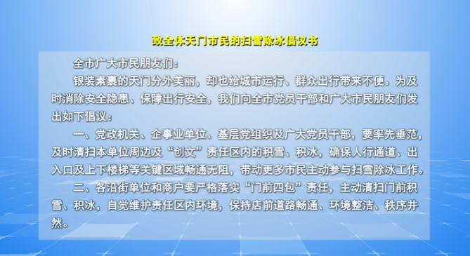 9、致全体天门市民的扫雪除冰倡议书
