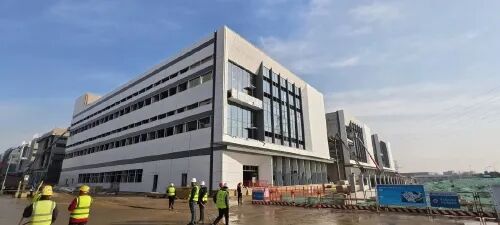 葛店泛半导体产业园已进入外立面装饰阶段,预计今年6月份全面建成投用
