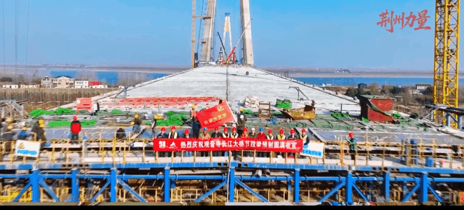 是李埠长江公铁大桥的钢筋铁骨拔节生长