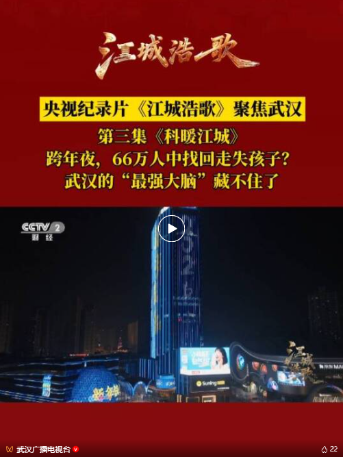 跨年夜,在66万游客中找回走失的幼童。从被动响应到主动智理,武汉建成了全国首个超大城市运行管理智能体,以数智技术赋能城市治理。1500余项城市体征指标,22万路视频“天眼”全域覆盖,297架无人机空中巡查景象,实时呈现着这座城市的生命健康状态。