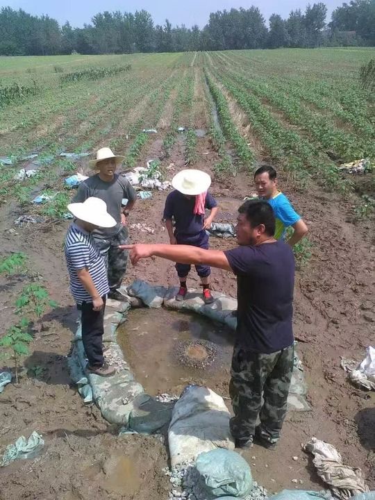 2016年汛期,吴劲松和村民在田间封堵管涌。新华社发(外岭村供图)