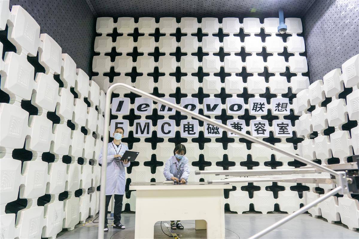 联想武汉产业基地内,研发人员在进行出口手机产品的天线射频信号测试。(湖北日报全媒记者 魏铼 摄)