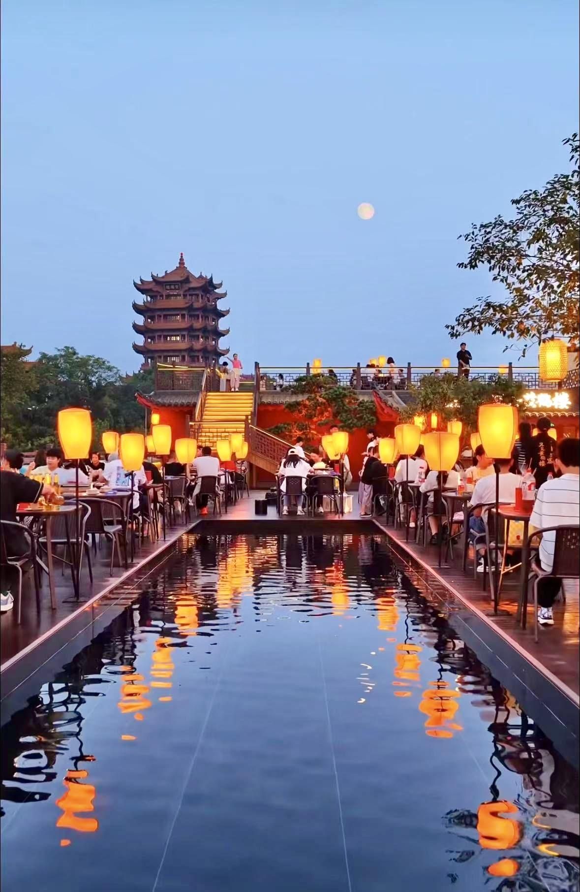 中华路57号清江饭店顶楼,站在1400平方米的露台上凭栏远眺,长江大桥横卧碧波之上,龟山电视塔与黄鹤楼隔江相望,长江两岸的壮阔景色尽收眼底。