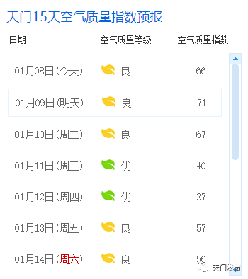 通过有效应对和气象条件好转的双重影响,2017年1月4日16时起,我市空气质量AQI指数降至200以下,达到优良水平,预计未来两天我市不会出现重污染天气,市政府决定自2017年1月6日16时解除重污染天气蓝色预警。