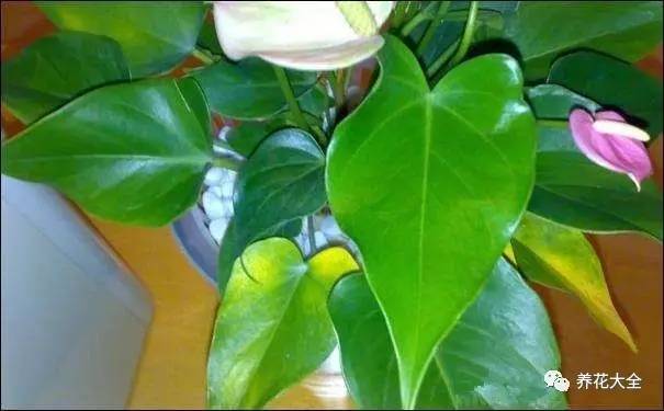 红掌虽然耐阴,但也需要光照,很多家庭养红掌一直把它放在荫蔽的环境中,长时间就会出现发黄情况。所以,正确的做法是把它放在阳台、客厅等明亮散光的地方养护。