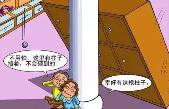在室外,安全的地方是远离建筑物空地。在室内,房屋倒塌后能形成三角空间的地方,往往是人们得以幸存的相对安全地点。比如:楼房中开间小、有支撑物的房间,如厨房、卫生间;家中牢固的桌下、床下、家具旁,内承重墙角;教室的讲台、书桌下;商场书店的结实柜台、室内立柱附近;影剧院的排椅下;工厂车间内的机床、大型设备附近等。