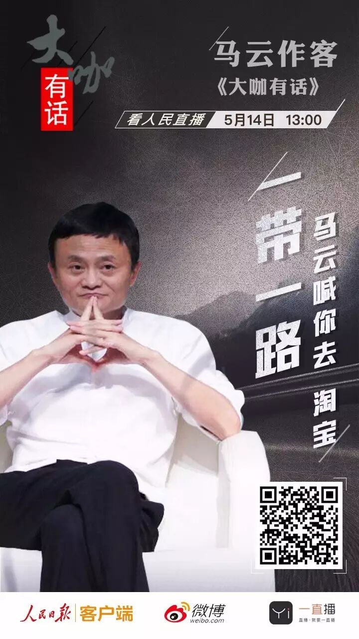 今天下午1点,阿里巴巴集团董事局主席马云将作客人民日报客户端“大咖有话”栏目,跟大家一起聊聊“一带一路”和淘宝的那些事儿。
