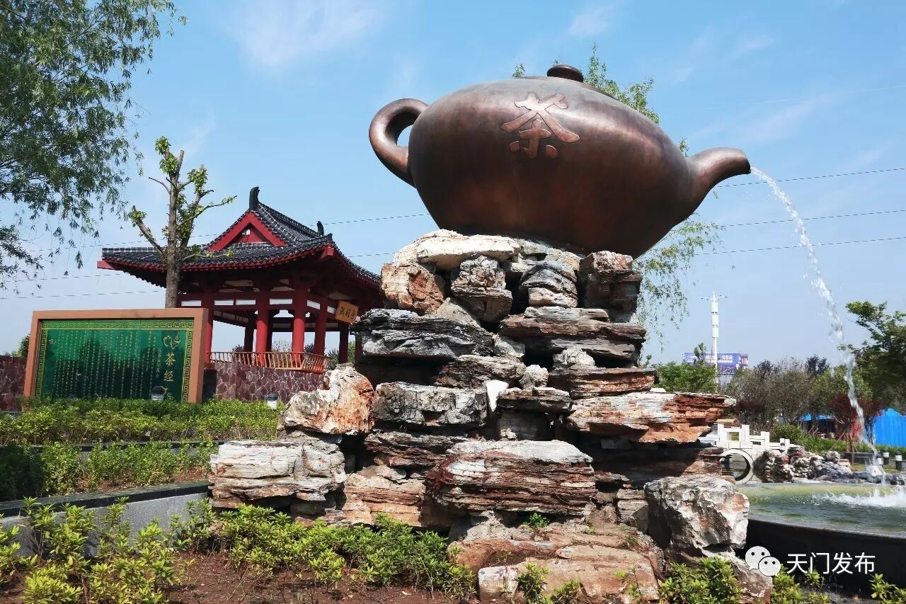 茶和天下位于天门城区西南方向,随岳高速公路收费站出口处,就能看见一只正在斟茶的大铜壶,寓意茶圣陆羽故里,天门人茶迎天下客。