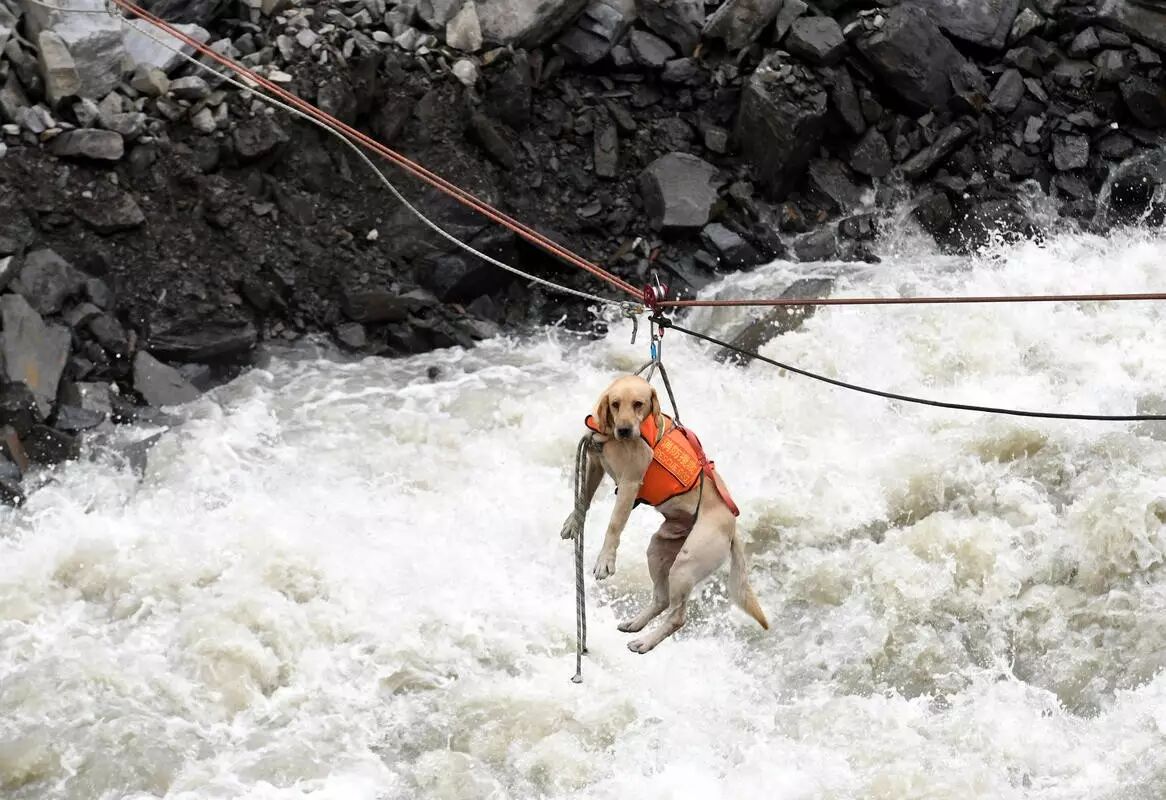 搜救犬累瘫在地