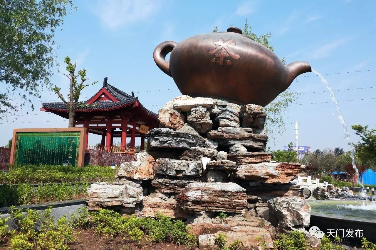 “天门版”的天门园在随岳高速公路天门入口、天仙公路与西环路交叉口西南角,以“茶和天下”为造园主题,将天门的历史文化特色融入园中。