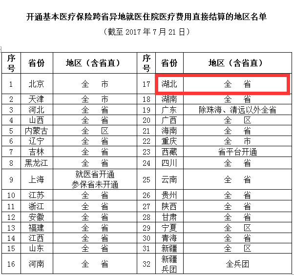 目前,湖北省内城市已全部接入国家异地就医结算系统。